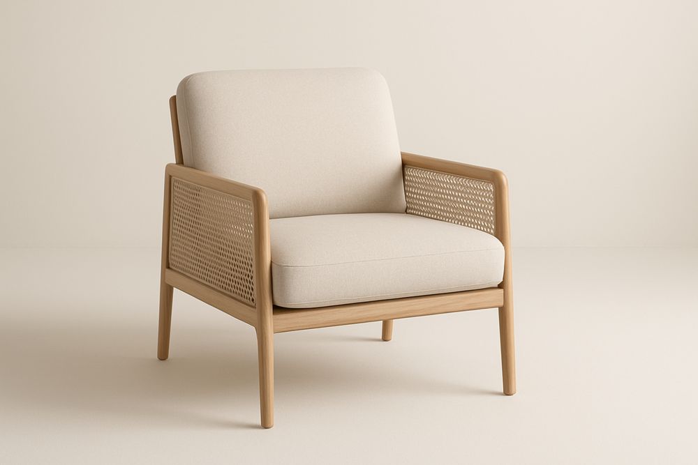 Krém színű tömörfa fotel poliészter ülőfelülettel, 75×85×80 cm